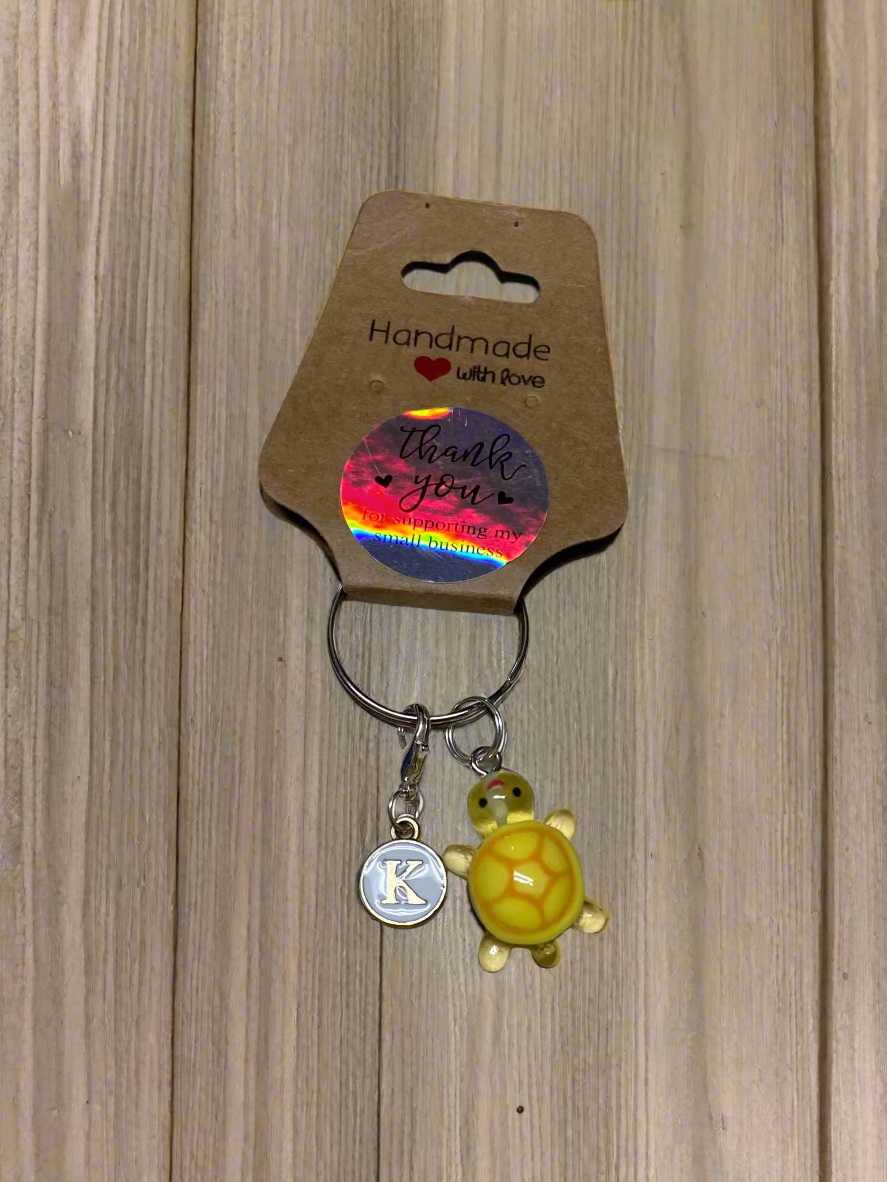 Yellow turtle and "K" charm