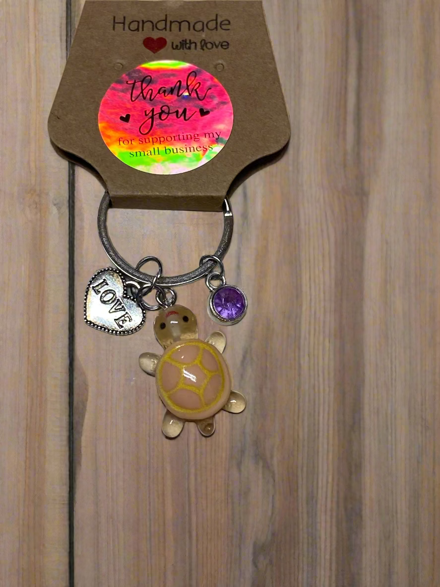 Peach turtle with "love" and purple charm